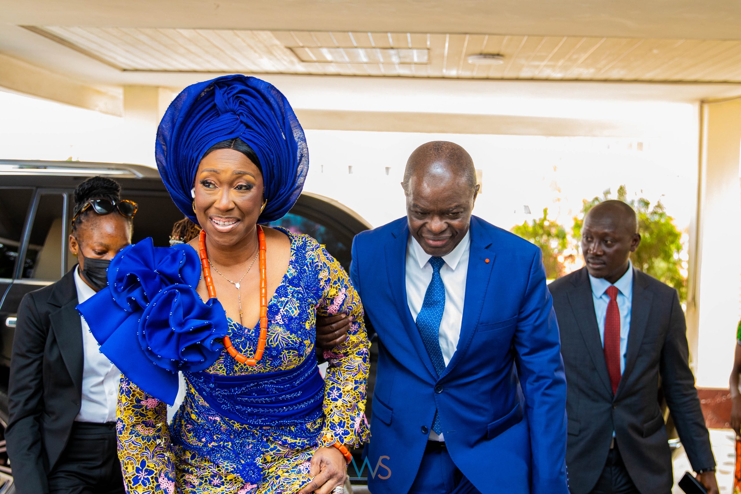 Côte D’Ivoire Deputy Senate President, Her Excellency, Fanny Moussokoura Chantal and Ambassador of Côte D’Ivoire to Nigeria, Kalilou Traore arrival at The Olu of Warri’s Palace