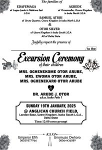 The event, scheduled for Sunday, January 19, 2025, will take place at the Anglican Church Field in London Base, Uzere Kingdom, Isoko South Local Government Area.