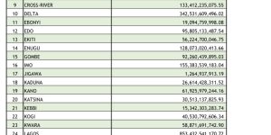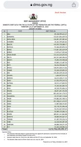 Other states in the top 10 for domestic debt include Ogun State (N201 billion), Imo State (N155.3 billion), Bauchi State (N145 billion), Niger State (N144 billion), Cross River State (N133.4 billion), Akwa Ibom State (N126 billion), and Adamawa State (N122.6 billion).