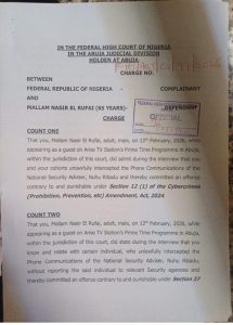 The Federal Government has arraigned former Kaduna State Governor, Nasir El-Rufai, on a three-count charge bordering on the alleged interception of telephone communications belonging to the National Security Adviser, Nuhu Ribadu. The case was filed at the Federal High Court in Abuja by the Department of State Services (DSS).