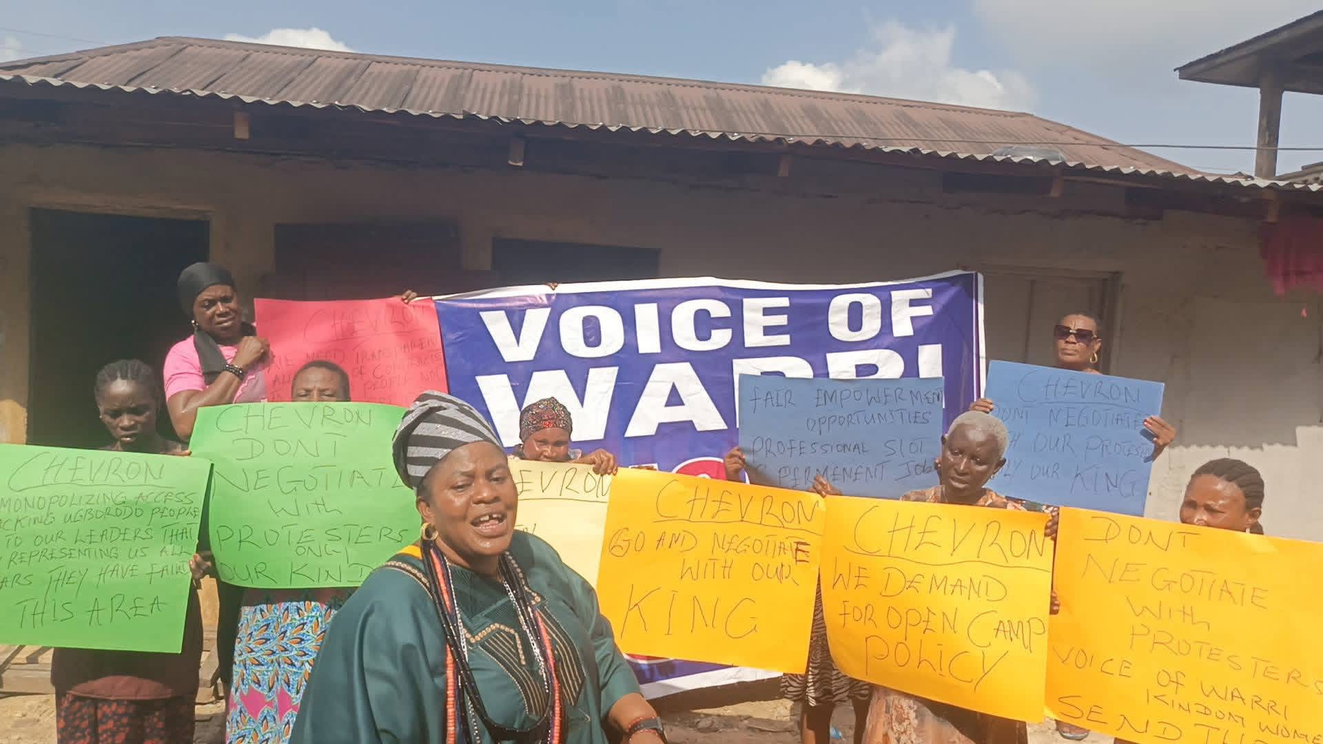 A women’s group from Warri Kingdom has asked Chevron Nigeria Limited to stop talks with protesters in Ugborodo and instead meet with the Olu of Warri. The call was made during a peaceful protest in Warri on Tuesday.